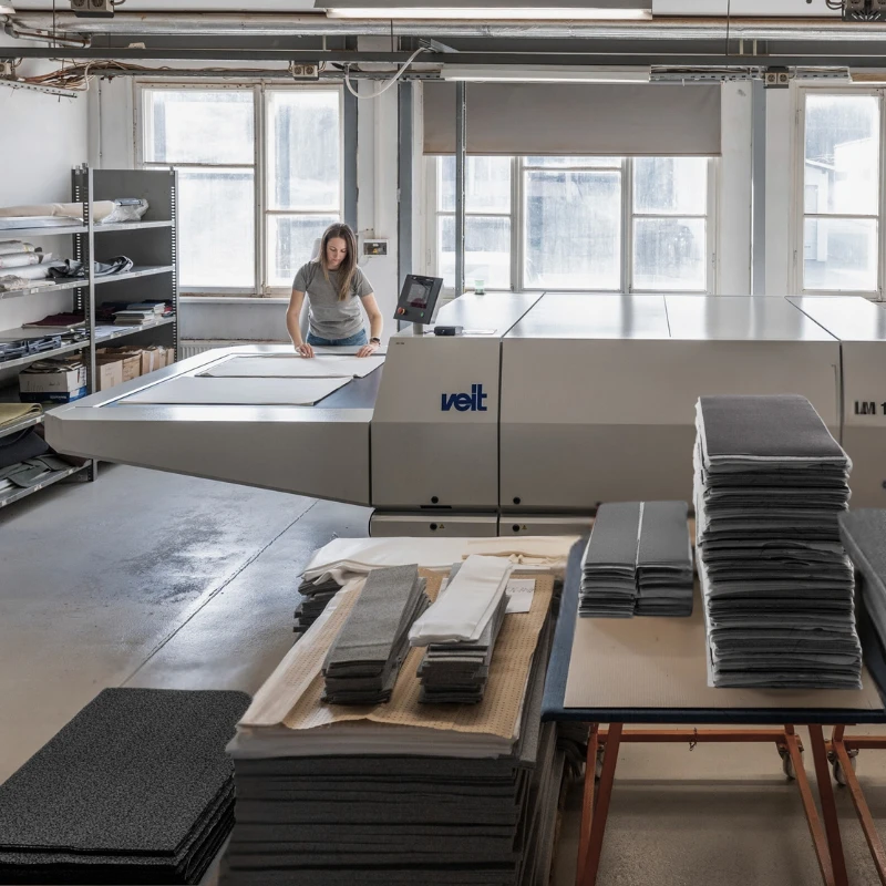 Med full in-house kapacitet – skärning, laminering, sömnad, brodering och montering – säkerställer vi kvalitet, regelefterlevnad och leverans i tid.